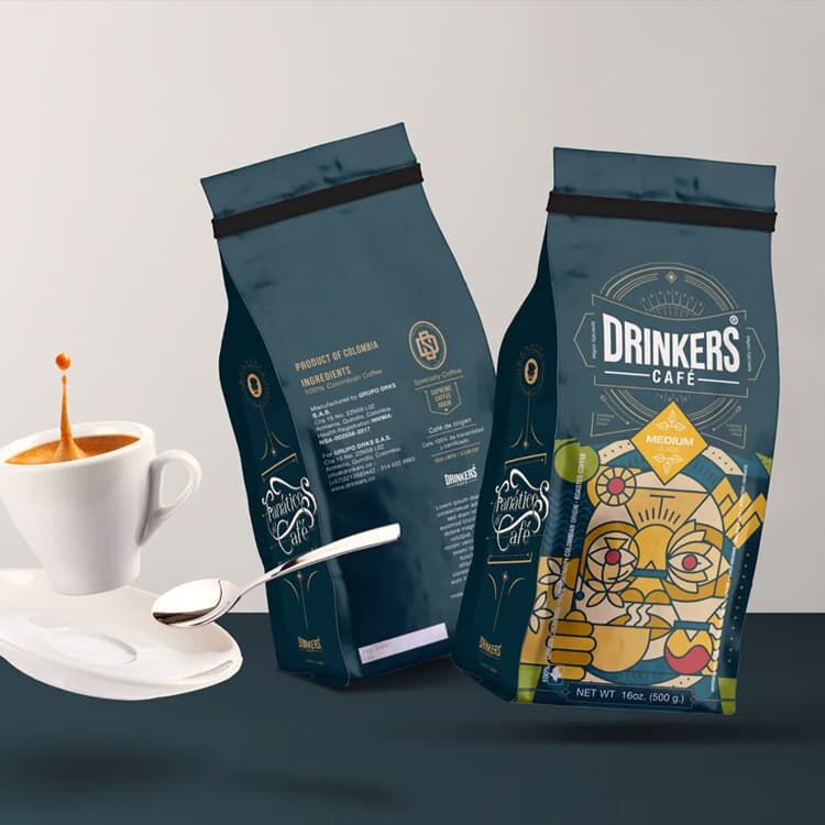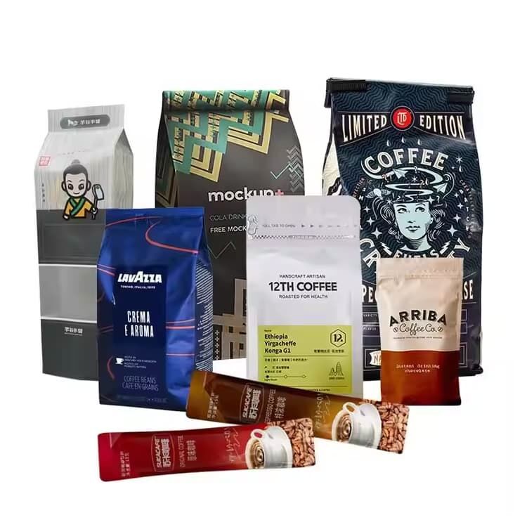 كيس قهوة كبير مخصص قابل للتصرف من ورق كرافت أسود، تغليف قابل للتحلل البيولوجي مع شعار، 1000 كجم، 1 كجم، 2.5 كجم، لحُزم حبوب القهوة